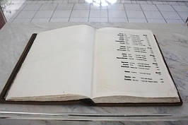 Im Friedhof, in der Friedhofskapelle; auf einem Pult offen aufliegend je ein Gedenkbuch für den