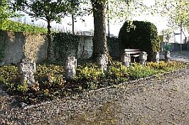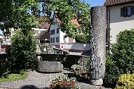 am runden Stein: Schlossen in diesen Stein ruhen die Namen der 37 Opfer des Krieges 1914 - 1918 84 Opfer des Krieges 1939 - 1945 die nicht in ihre Heimat Ebringen wiederkehrten