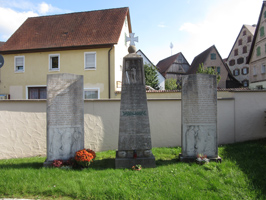 Dreiteiliges Denkmal im Kirchhof für die Orte Engelthal, Sendelbach, Peuerling und Kruppach. Ergänzende Angaben von Einzelgedenken auf Privatgräbern.