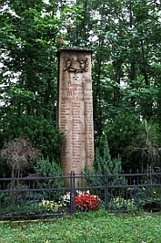 Oberhalb vom Ort, am Eichberg; Säule neben einer Kapelle, vorne mit Namensliste, seitlich Inschrift