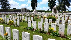 Flers (Britische Kriegsgräberstätte A.I.F. Burial Ground), Departement Somme, Region Hauts-de-France, FrankreichPLZ 80360 Britische Kriegsgräberstätte mit deutschen Gräbern