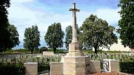 Fleurbaix (Britische Kriegsgräberstätte Rue du Bois), Departement Pas de Calais, Region Haut-de-France, FrankreichPLZ 62840 Britische Kriegsgräberstätte mit einem deutschen Grab