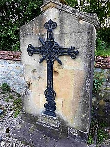 Am Grabdenkmal des 1.Weltkriegs war früher eine Namenstafel angebracht. Heute ist nur noch die Widmung der Familie in groben Zügen erkennbar (einige Löcher und Verwitterungen im Text). Wie üblich wurde der Soldat wohl auf eine größere Kriegsgräberstätte umgebettet und die Namenstafel entfernt. Bei Gefallenen des Krieges 1870/71 wurde dies nicht getan und sie ruhen wahrscheinlich noch hier.