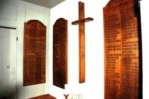 In einem kleinen Nebenraum der Kirche am Markt befinden sich zwischen einem Kreuz an der Wand hängend