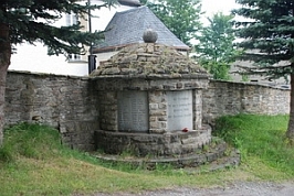 An der Außenseite der Friedhofsmauer besteht ein halbrundes Denkmal aus Feldstein mit zwei Namens- und einer Widmungstafel.