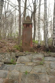 Am Waldrand, eingangs des Mörtelgrundes, steht ein schmaler Obelisk aus rotem Stein. Eine Namensseite ist völlig verwittert und nicht mehr lesbar.