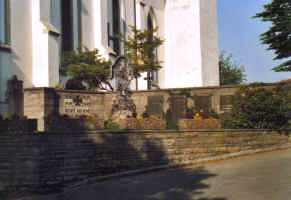 Denkmal an der äußeren Friedhofsmauer zur Hauptstraße hin südlich der Pfarrkirche St. Margaretha. Einige Daten sind nicht lesbar, da sie durch Pflanzen verdeckt sind.; zusätzlich Hinweise zu Soldaten von privaten Gedenksteinen