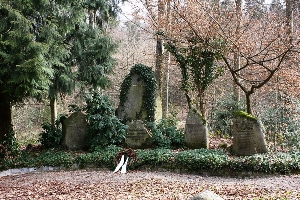 Bei der Jugendhütte am Waldrand oberhalb des Friedhofes; eine Gruppe von Natursteinen mit Inschriften und Namen; zusätzlich Hinweise zu Soldaten von privaten Gedenksteinen