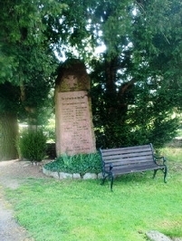 Auf dem Friedhof steht ein ca 2 m hoher Feldstein mit einer Tafel aus rotem polierten Granit.