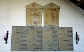 Der Gefallenen und Vermissten wird vor der Kirche auf einem quaderförmigen Denkmal mit Spitzdach gedacht. Zusätzlich befinden sich Gedenktafeln in der Kirche.