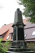 a) Bei der Kirche: Denkmal in Form einer quadratischen Säule, Tafeln an allen Seiten (1. Weltkrieg). b) Im Friedhof: Vier stehende Steinplatten zwischen Tujenhecken, davor Hochkreuz (1. u. 2. Weltkrieg).