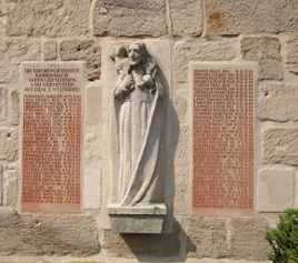 Gedenktafeln an der evangelischen Kirche für die Orte Kairlindach, Allersbach, Biengarten, Großenseebach, Mechelwind, Neuenbürg, Oberlindach und Reinersdorf.