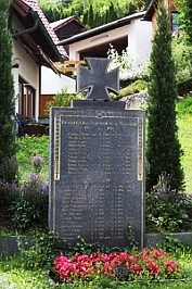 Bei der Kirche; stehende Marmorplatte, oben mit Eisernem Kreuz