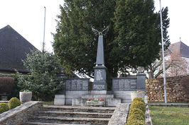 Im Friedhof: auf einem Podest Säule, oben mit Adler. Am Sockel sind Inschriften und Namen (1. Weltkrieg); seitlich Wände mit Namen (2. Weltkrieg); unterhalb dieses Denkmals Kriegsgrab. Zusätzlich Hinweise zu Soldaten von privaten Gedenksteinen.