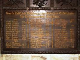 Holztafel mit den Namen der Gefallenen in der Kirche Keutschen.