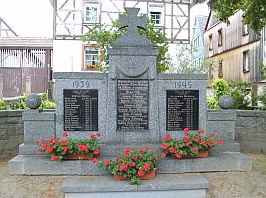 Das Kriegerdenkmal befindet sich in der Ortsmitte. Aus mehreren Teilen zusammengesetztes Denkmal. Mit drei Namensplatten aus Marmor.