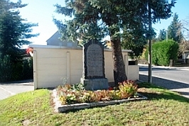 Kleinrügeln, Stadt Strehla, Landkreis Meißen, SachsenPLZ 01616 Am Ortsausgang von Strehla, im Ortsteil Kleinrügeln, steht an der Hauptstraße das Denkmal in Form eines Grabsteins aus rotem Stein.