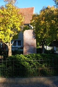 An der Hauptstraße steht ein Gedenkstein aus rotem poliertem Granit.