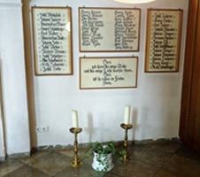 Gedenktafel evangelische Kirche: IHREN IM 2. WELTKRIEG 1939 – 1945 – GEFALLENEN DIE EVENGL.-LUTH.-KIRCHENGEMEINDE KOHLBERG