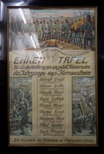 Die Ehrentafel von W. Kern von 1920 mit drei Abbildungen von Soldaten (am Grab, im Kampf, zwei Sanitäter mit Verletzten) in einem verglasten Holzrahmen befindet sich heute in den Stadtgeschichtlichen Sammlungen des Vereins für Geschichte und Heimatpflege Kornwestheim, Mühlhäuser Straße 14, 70806 Kornwestheim.