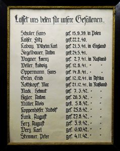 Die Ehrentafel für die Gefallenen des 2. Weltkriegs in einem verglasten Holzrahmen befindet sich heute in den Stadtgeschichtlichen Sammlungen des Vereins für Geschichte und Heimatpflege Kornwestheim, Mühlhäuser Straße 14, 70806 Kornwestheim.