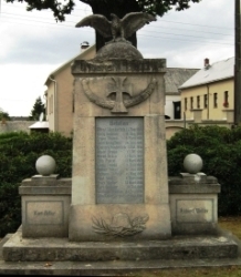 Sandsteindenkmal, nach 1918 errichtet. Auf zwei Stufen einzeln stehender, leicht konisch zulaufender Kubus mit Adler als Abschluss. Vorder- und Rückseite mit Inschrifttafeln, die den Opfern der beiden Weltkriege gewidmet sind. Zwei Seitenwürfel mit Inschrift und Kugel als Abschluss. Namen sind nur vom 1. Weltkrieg enthalten. Die Namen der Opfer des 2. Weltkrieges wurden entnommen aus: Klaus Berndt. Die Gefallenen aus Landwüst in der Zeit des Zweiten Weltkrieges. Neikirnger Heimatbote. Jg. 11/2004 Heft 2 S. 86.
