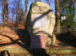 Findling mit Widmung und Namensliste der Gefallenen des 1. Weltkrieges. Davor liegt eine Platte für den