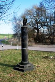 Am Ortsrand steht eine ca 2,5 m hohe runde schwarze Säule bekrönt von einem Adler.