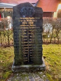 Denkmal neben der evangel. Michaelskirche. Aufrecht stehende, schwarze Natursteinplatte auf Sockel, geschmückt mit einem „Eisernen Kreuz“ in Ehrenkranz. Inschrift, Namen iund Zahlen vergoldet.