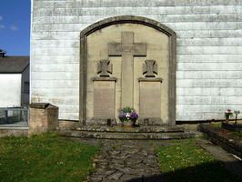 Auf dem Sandsteinkreuzquerbalken: Unseren Gefallenen