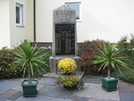 Das Denkmal ist Teil einer kleinen Anlage auf dem ehemaligen Standort der 1972 abgerissenen Dorfkapelle in der Ortsmitte. Es sind die Opfer beider Weltkriege aus Lochau, Haselbrunn, Neuköslarn und Neuweiher verzeichnet.