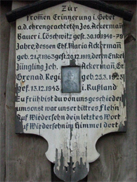 Jüngling Joh. Ackermann, Gr. Grenadier. Regi. geb. 25.03.1923 gef. 13.12.1943 i. Rußland