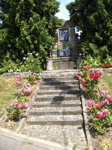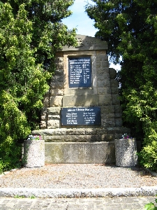 Östlich der Hauptstraße (K2219) Richtung Ossig ein gemauertes Denkmal für die Gefallenen des 1. Weltkrieges, zusätzlich versehen mit einer Tafel mit den Namen derer des 2. Weltkrieges.