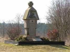Das Kriegerdenkmal für die Gefallenen des Ersten Weltkrieges besteht aus einer zweigestuften Stele und abschließendem Dreieck, das von einem steinernen Eisernen Kreuz abgeschlossen wird. Im Dreieck das Relief eines vor einem Grab knieenden Soldaten. Auf der Stele die Namen der Gefallenen des 1. Weltkrieges. Auf dem Grundsockel die Inschrift dazu. Davor wurde im Jahre 2000 eine Platte gelegt, die eine Inschrift und die Namen der Gefallenen des zweiten Weltkrieges trägt.