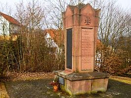 Das Kriegerdenkmal befindet sich auf dem Friedhof. Ein aus Sandsteinquadern gefertigte viereckige