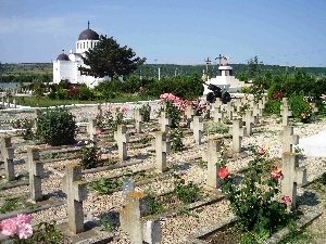 Als Zeichen für Mut und militärische Ehre ruhen auf diesem Friedhof gemeinsam für die Ewigkeit Rumänen, Bulgaren, Deutsche, Russen und andere in dem ersten Weltkrieg Gefallene