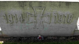 Zahlen 1914 und 1918 mit einem großen Eisernen Kreuz angebracht. Auf dem Stein sind auch vier russische