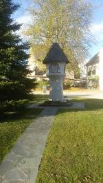 Weltkriege. Der Bildstock befindet sich auf einer Grünfläche nahe der Kirche.