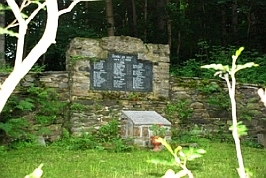 Gefallenen des 1. Weltkriegs. Davor steht ein kleines, ebenso aus Feldstein gemauertes Podest auf welchem