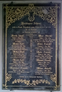 Gedenktafel für die Gefallenen des Deutsch-Französischen Krieges in der Friedhofskirche St. Emmeram. Die Tafel wurde von Julius Heller, einem Nördlinger Zeichenlehrer und Künstler, 1892 entworfen und später ausgeführt.