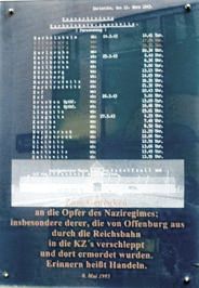 Gedenktafel: Zum Gedenken an die Opfer des Naziregimes; insbesondere derer, die von Offenburg aus durch die Reichsbahn in die KZ´s verschleppt wurden. Erinnern heißt Handeln. 08.Mai 1995