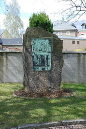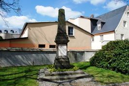 Obelisken für die Gefallenen von 1870/71. Daneben befindet sich ein ca. 2 m hoher Feldstein mit zwei