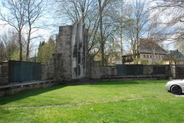 Hinter der Stadtkirche steht die Denkmalsanlage für die Gefallenen der Stadt. Mittig befindet sich eine mehrere Meter hohe aus Feldstein gemauerte Säule mit zwei Figuren. Daneben befinden sich an der Natursteinmauer jeweils drei Namensplatten für die Gefallenen des 1. Weltkriegs und eine Widmungsplatte für den 2. Weltkrieg.