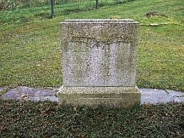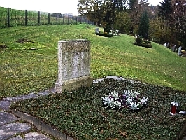 Ollmuth, Verbandsgemeinde Ruwer, Landkreis Trier-Saarburg, Rheinland-PfalzPLZ 54316 Am Eingang des Gemeindefriedhofs ein Kameradengrab, Kunststeinstelle, auf Sockel, Vorderseite geschliffen, dort eingravierte Daten, oberhalb der Daten in Halbrelief Stahlhelm, Lorbeerzweige und gekreuzte Knochen, Grabstelle mit Bodendecker und Blumen bepflanzt, sehr gepflegt.