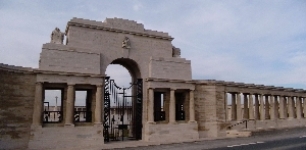Gedenkwänden mit den Namen von 14 000 englischen Vermissten dieser Kämpfe. Die ganze Anlage ist