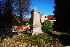 Im Ortszentrum steht ein Obelisk aus rotem Granit mit drei Namenstafeln und einer Widmungstafel für die