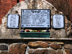 1914 1918 Unseren Helden zum Gedächtnis Aus Petersberg: (Namen) Aus Pretschwitz: (Name) Aus Kischlitz: (Namen) Ehre ihrem Andenken! zum Gedächtnis 1939 - 1945 (Namen)