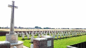 Plogsteert (britische Kriegsgräberstätte Motor Car Corner), Gemeinde Comines-Warneton, Provinz Hennegau, Region Wallonien, BelgienPLZ 7780 Britische Kriegsgräberstätte mit einem deutschen Grab