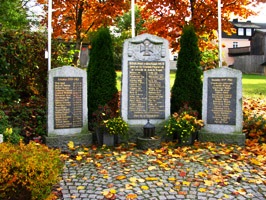 Das dreiteilige Denkmal steht neben der Kirche. Zusätzliche Angaben von Einzelgedenken auf Privatgräbern.