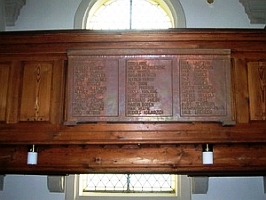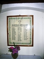 In der Kirche befindet sich an der Empore eine messingfarbene Tafel mit den Namen der Gefallenen des 1. Weltkriegs. An der Wand links vorm Altar befindet ein gerahmte Auflistung der Gefallenen des 2.Weltkriegs
